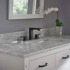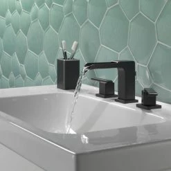 Delta Ara 2-Handle Wide Spread Bathroom Faucet With Channel Spout, Matte Black