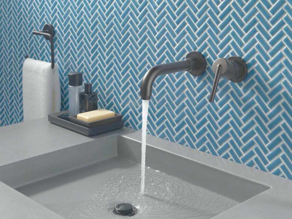 - Delta 1-Handle Wall Mount Lav Faucet Trim features two hole installation