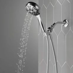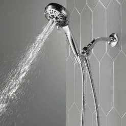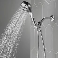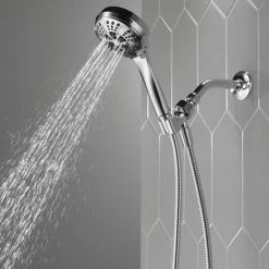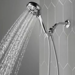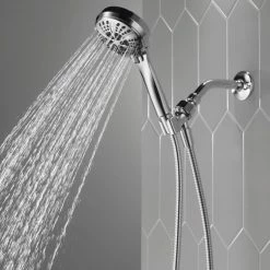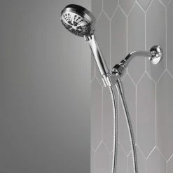 - Replace your old shower head with the Delta 6-Setting Handheld Shower Head