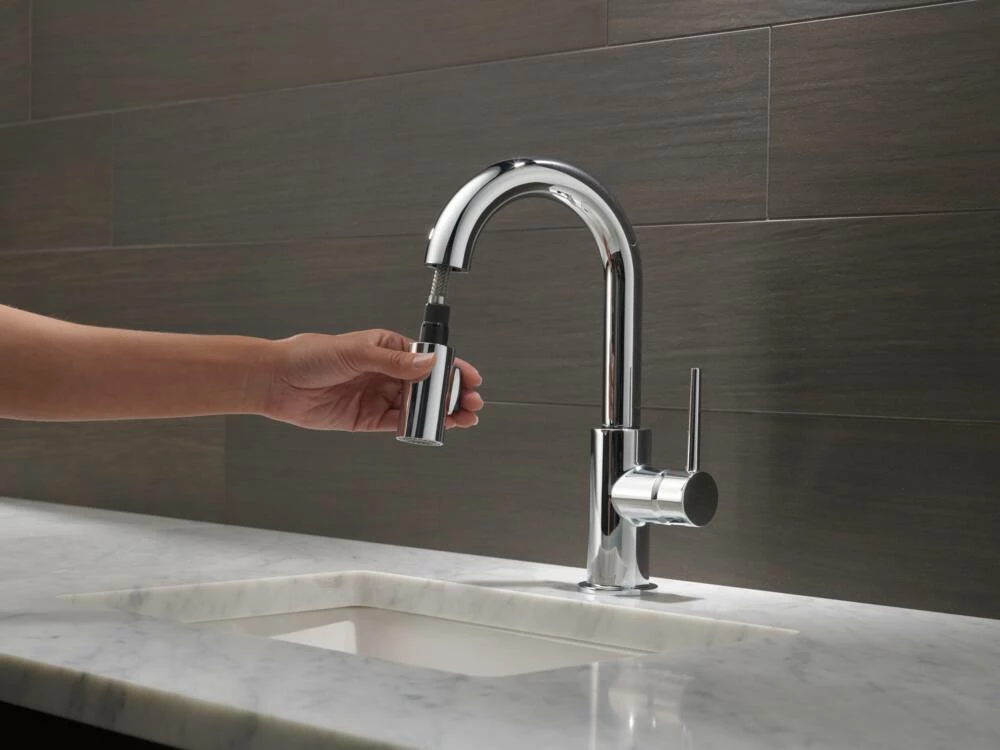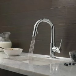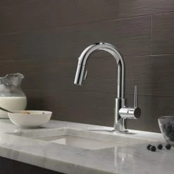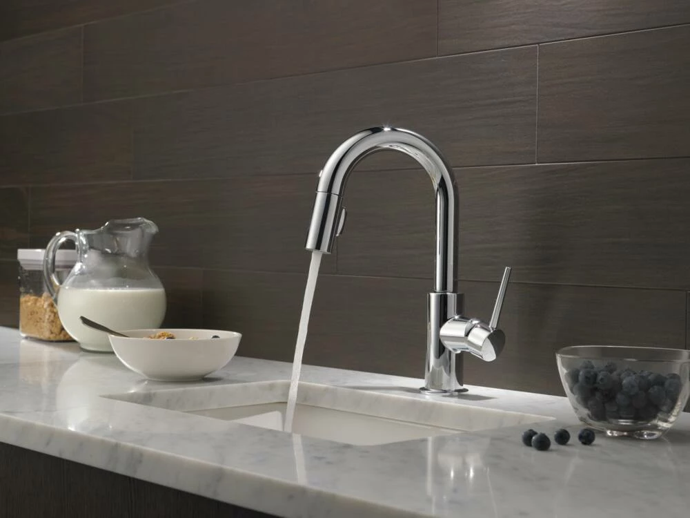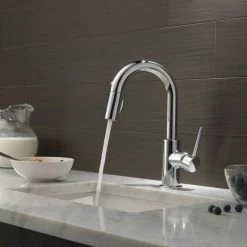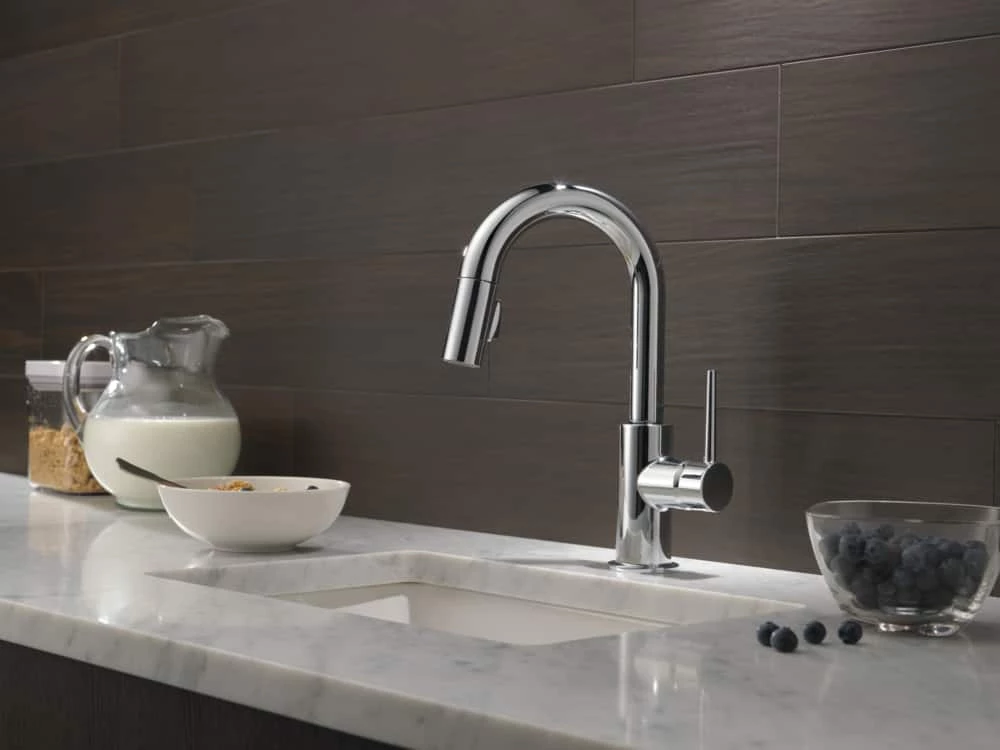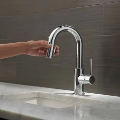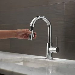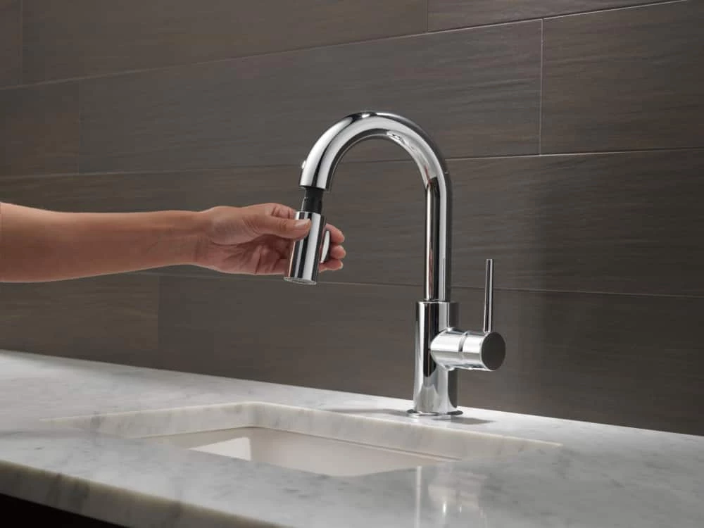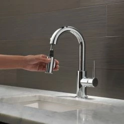 - Delta Trinsic 1-Handle Pull-Down Bar/Prep Faucet wraps outstanding performance in the sleek elegance of modern design