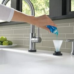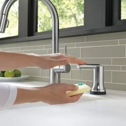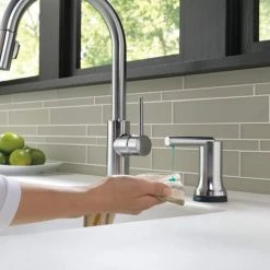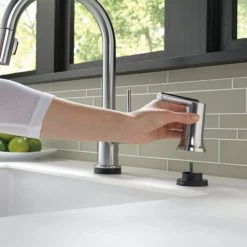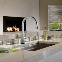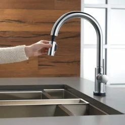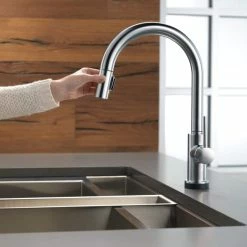 - Delta Trinsic 1-Handle Pull-Down Kitchen Faucet wraps outstanding performance in the sleek elegance of modern design