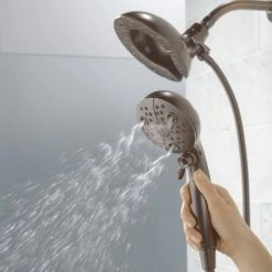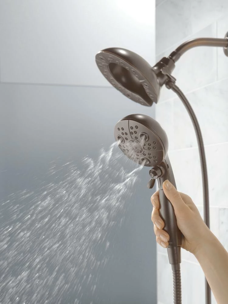 - Delta H2Okinetic In2ition 5S 2-in-1 Shower gets water where you need it most using the integrated shower head and hand shower separately or together