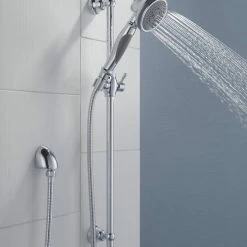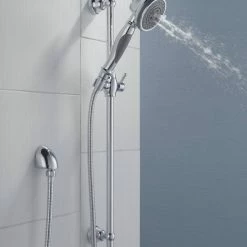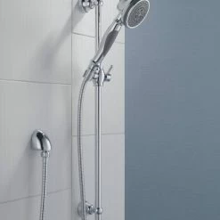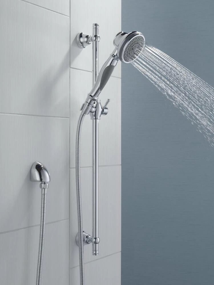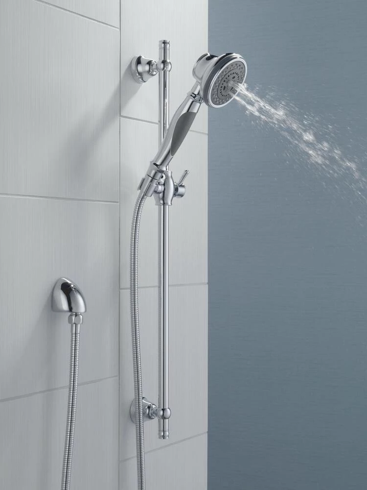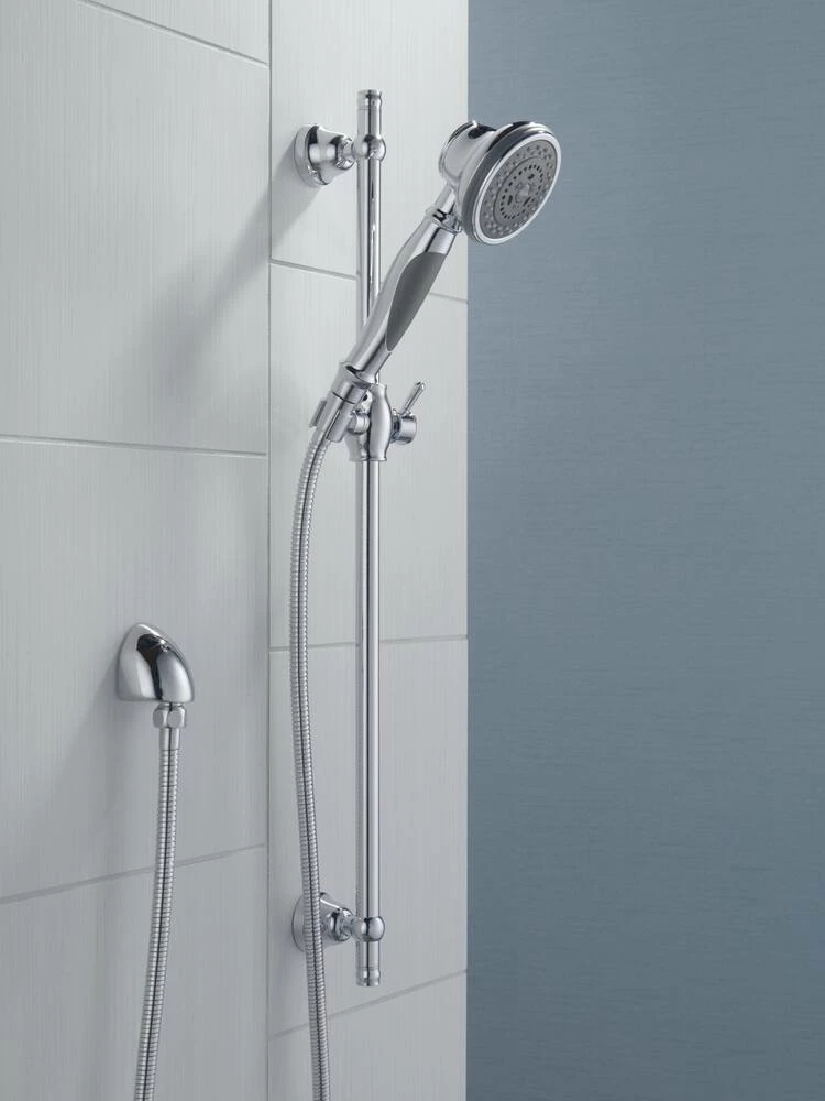 - Delta Premium 3 Setting Slide Bar Hand Shower features five-setting hand shower
