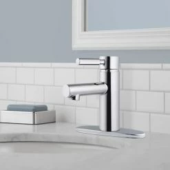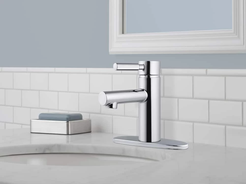 - Fits 1- or 3-hole sinks with a 4″ (10.2 cm) installation and includes optional escutcheon