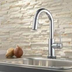 - Delta Trinsic 1-Handle Pull-Down Bar/Prep Faucet features Touch2O Technology – a simple touch anywhere on the spout or handle will start and stop the flow of water