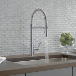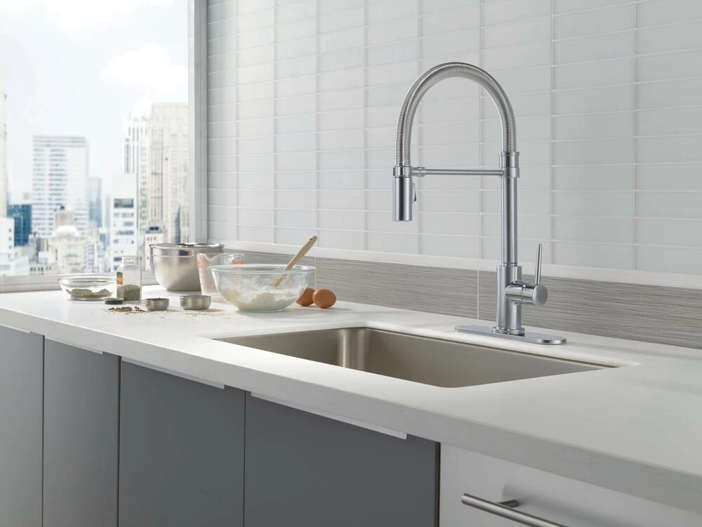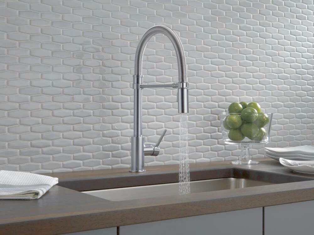 - Delta Trinsic 1-Handle Pull-Down Kitchen Faucet with MagnaTite docking keeps the kitchen pull-down spray wand firmly in place with a powerful integrated magnet, so it stays docked when not in use