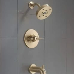 - Delta Trinsic Monitor 14-S H2Okinetic Tub and Shower Trim sculpts the water into a unique wave pattern, giving the feeling of more water without using more water