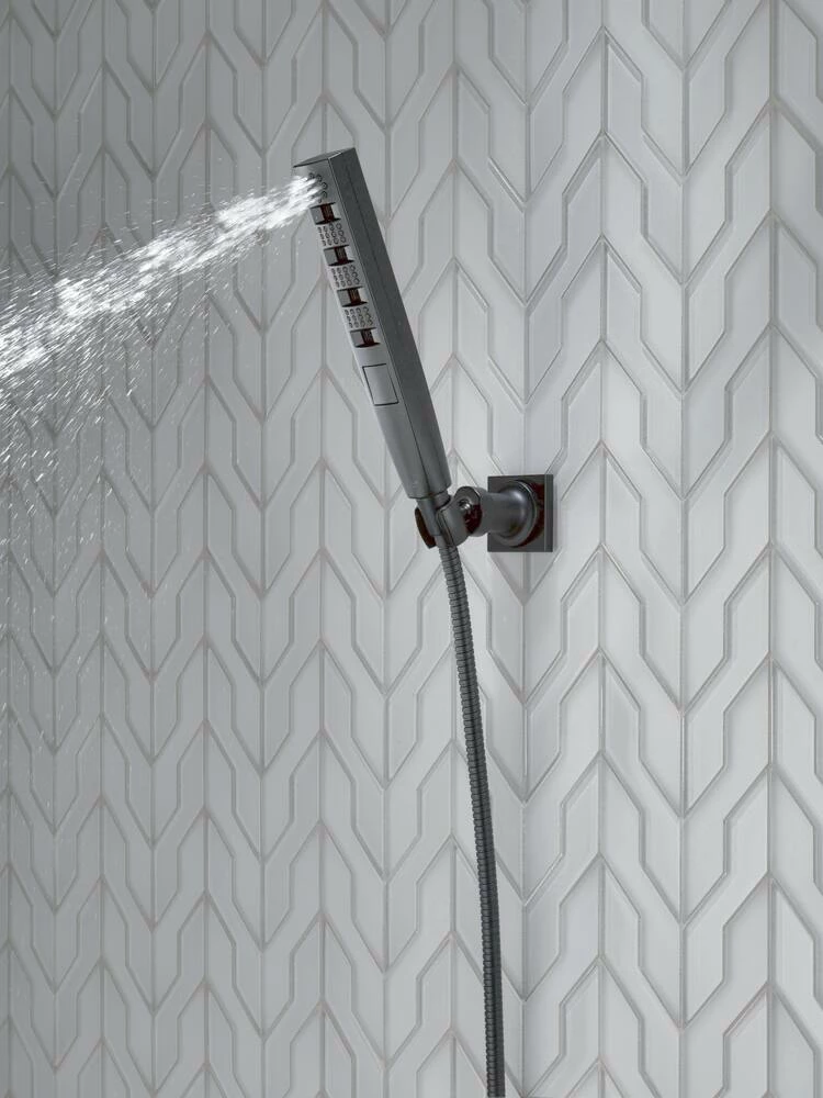 - Delta Zura H2Okinetic 4-Set Wall Hand Shower sculpts water into a unique wave pattern, forming a powerful drench spray
